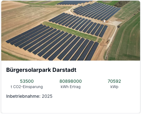 Die Spannweite der Projekte ist erheblich. Am einen Ende der Skala: Eine Photovoltaikanlage auf der Kinderkrippe in Johannesberg, die jährlich 14.000 Kilowattstunden erzeugt. Am anderen Ende: Der Bürgersolarpark Darstadt der Genossenschaft egis mit einer Jahresproduktion von über 80 Millionen Kilowattstunden.